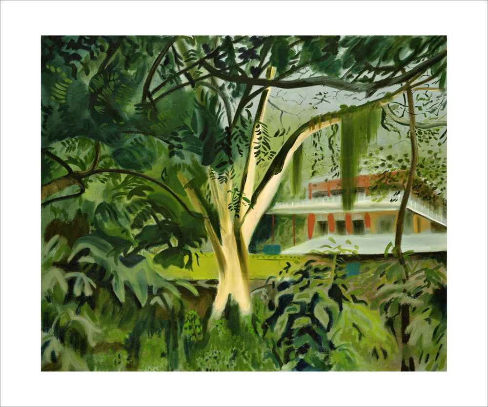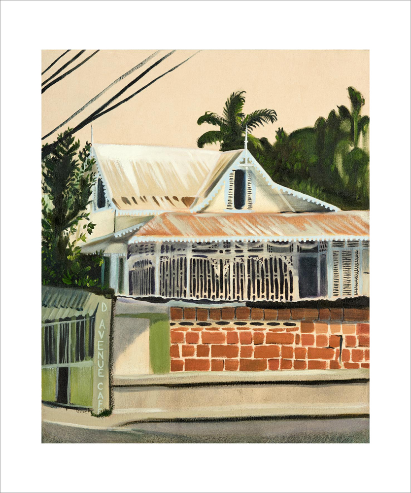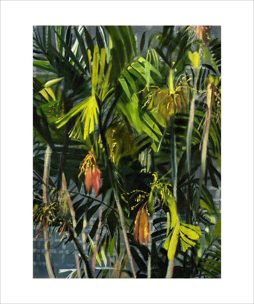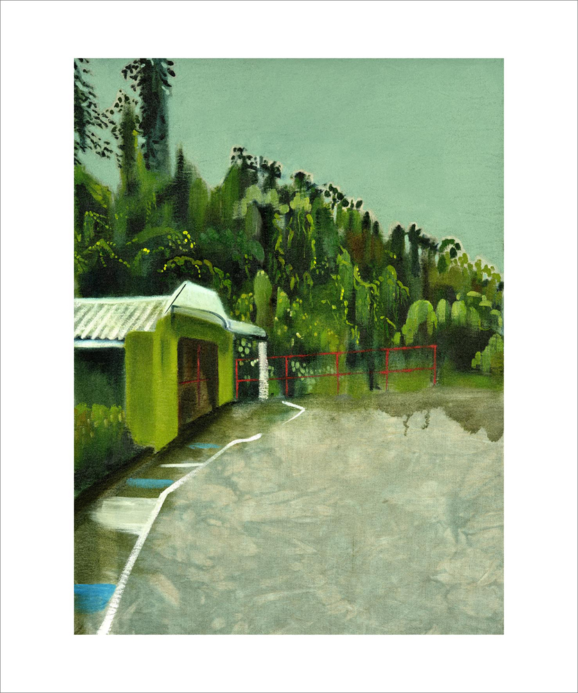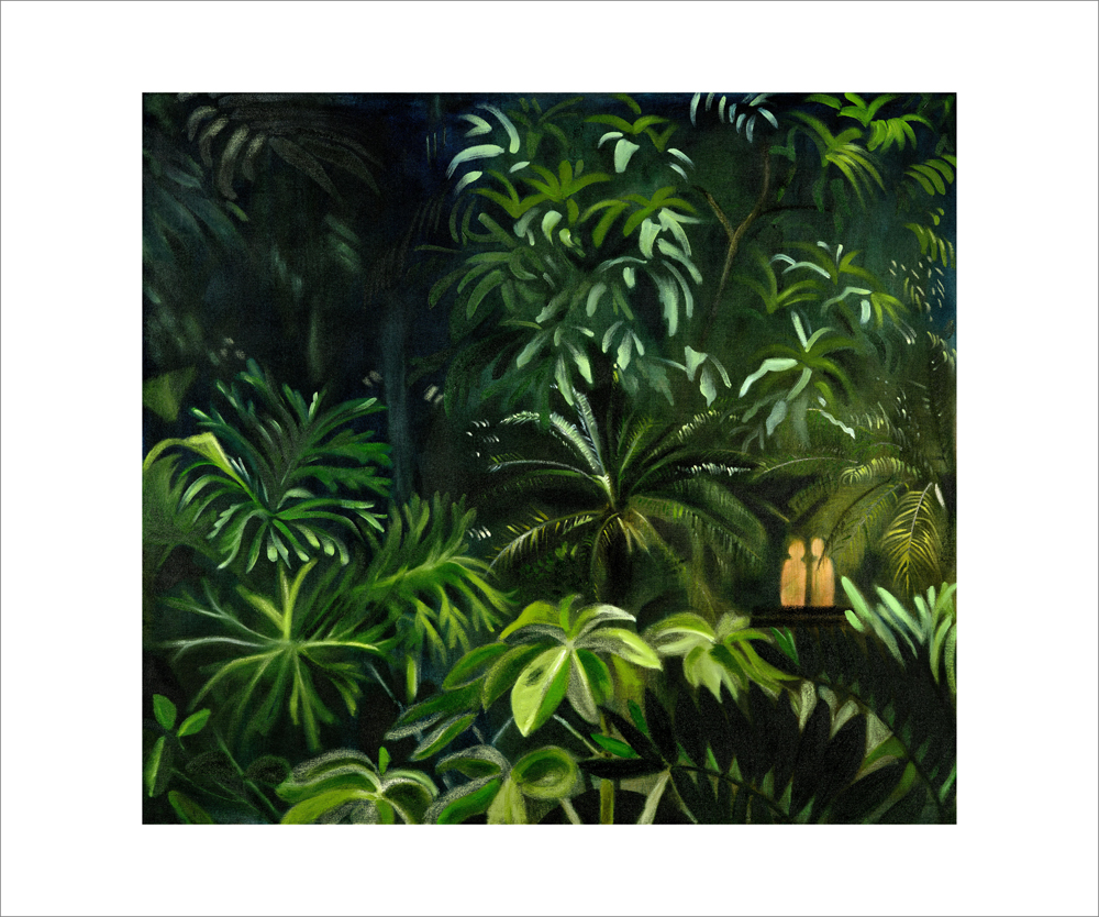 Her work investigates her relationship to the landscape of Trinidad where she occupies the interstice between insider and outsider. The paintings expose her point of view as an interloper of a familiar yet strange land.