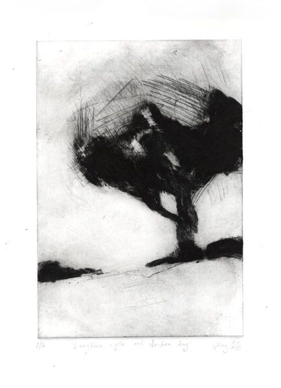 Originally from Hebden Bridge, Izzie studied illustration in Leeds where she began printing and discovered drypoint. Through university she focused on the lives and literature of the Brontë sisters, where much of the themes of darker landscape comes from. Research of the Brontë sisters continued after education and through walks across West Yorkshire, the land continues to be a large source of inspiration which shows through Izzie’s wild and windswept printmaking.