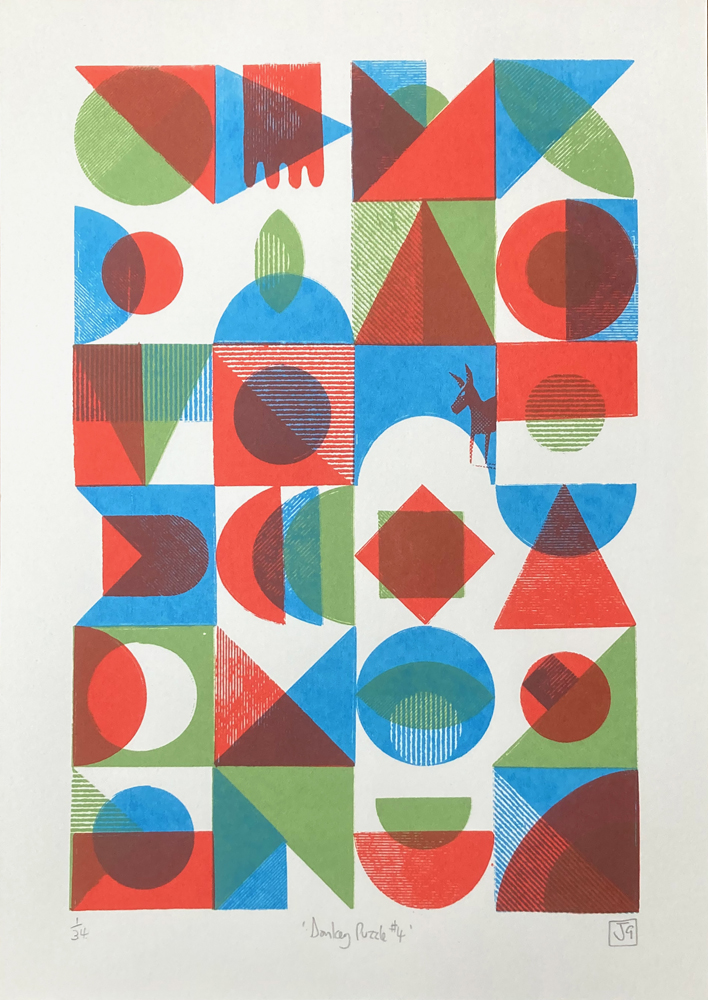 James is an artist/printmaker and specialises in linocut and screenprint. His subjects range from landscapes to wildlife to surreal images (usually inhabited by donkeys!).