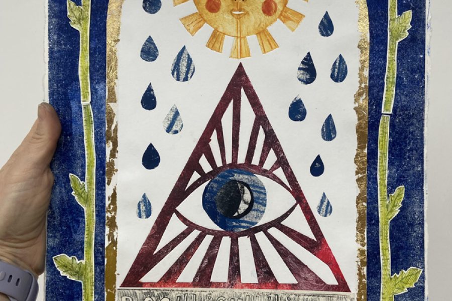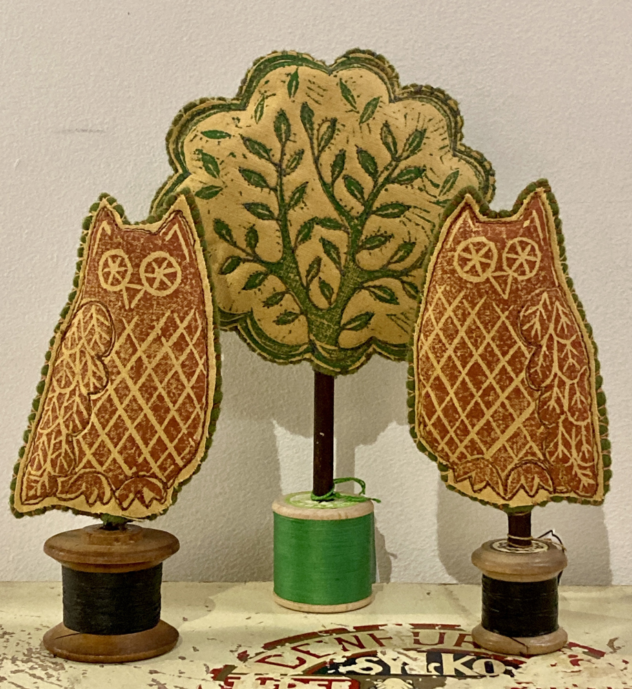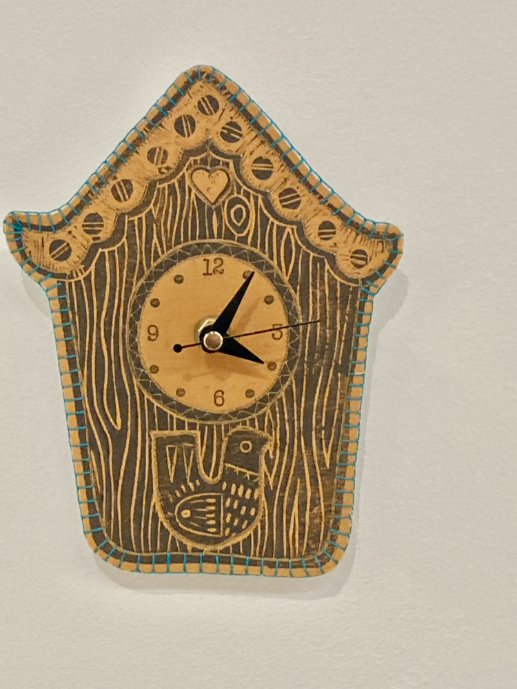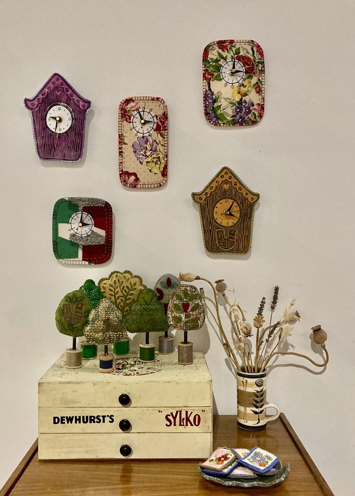 Returning for her 4th year taking part in Saltaire Arts Trail, Jane is delighted to be returing again with her quirky stitched things made from heritage fabrics and her own lino print designs. Little ‘cotton reel trees’ which stand on vintage sylko cotton reels and delightful fabric clocks adding a pop of vintage charm toy your home.