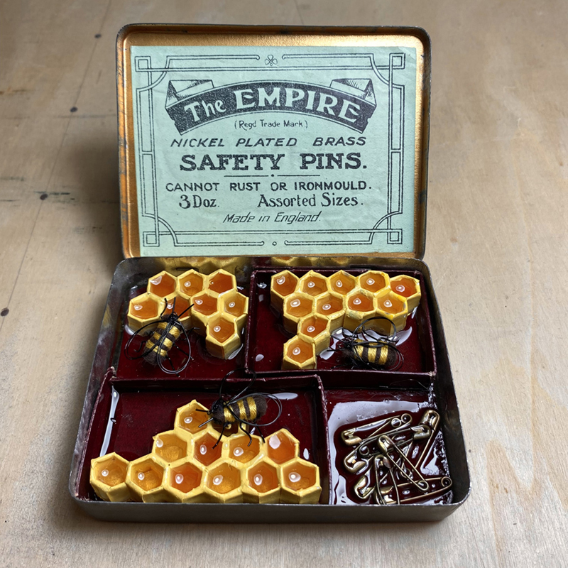 Leigh is a mixed media artist working from her home studio in Haworth, West Yorkshire. Her work is created from vintage finds, natural inclusions, paper and resin. Many of her pieces are created from vintage items from the textile heritage of Lancashire and Yorkshire alongside typecase trays, tins and wooden boxes – items that have outlived their original purpose and are upcyled to create beautiful, unique pieces of art. Her work is exhibited throughout the UK.