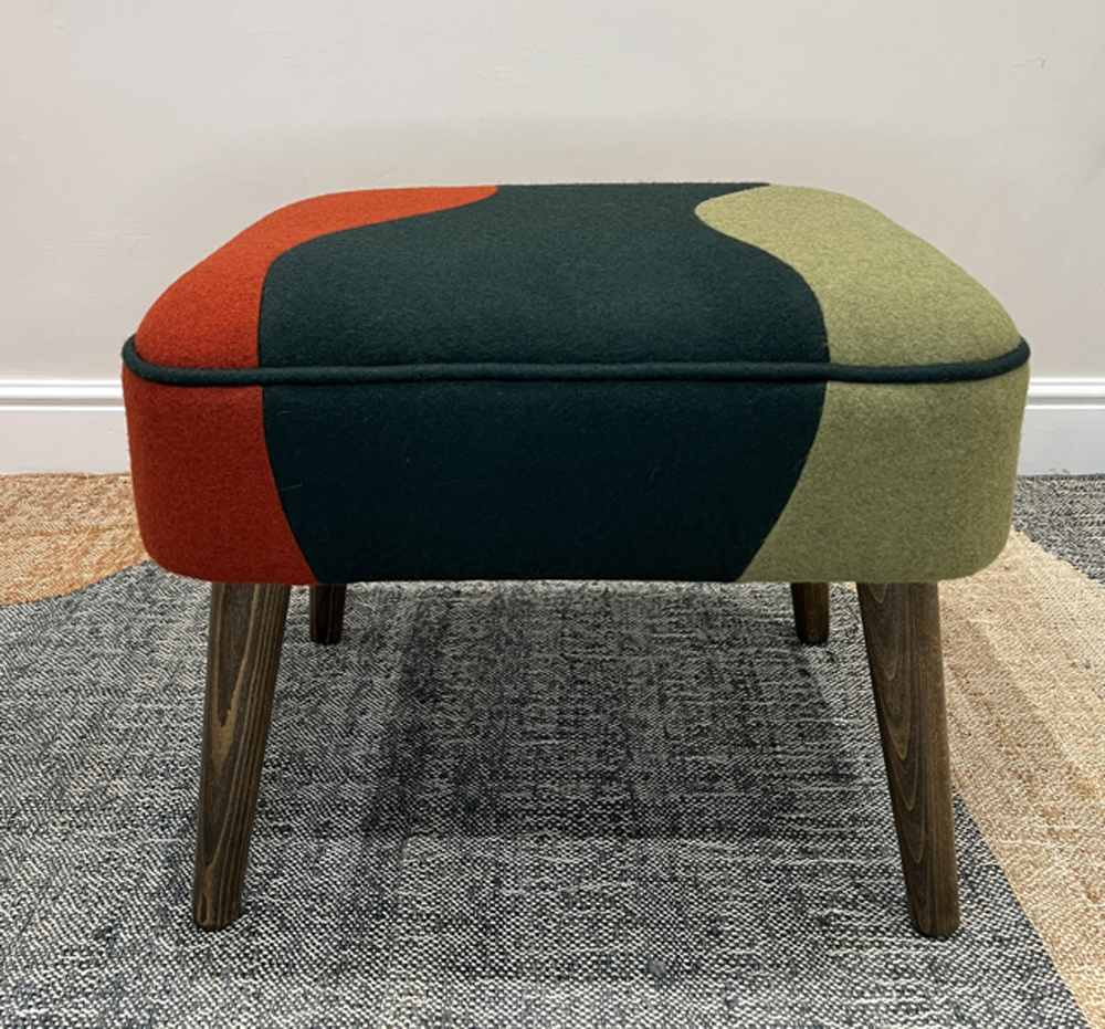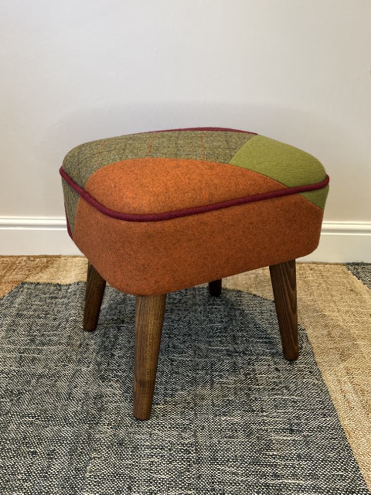 Peachy Perch is the creative work of Shirley Turnbull, a Yorkshire based upholsterer, lover of colour and champion of wool. She designs and upholsters footstools, benches and ottomans using hardwood frames and luxurious woollen fabrics, sourced from West Yorkshire fabric mills. She mixes bold colours and patterns to create one-of-a-kind pieces. All of her designs can be re-created in a range of colours to suit your style, and she welcomes commissions for bespoke sizes and new designs.