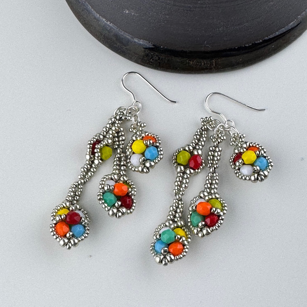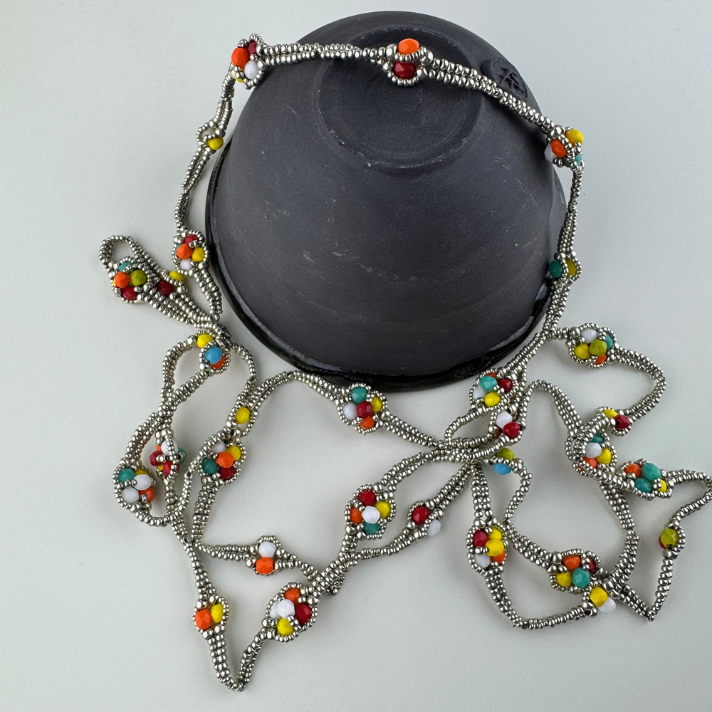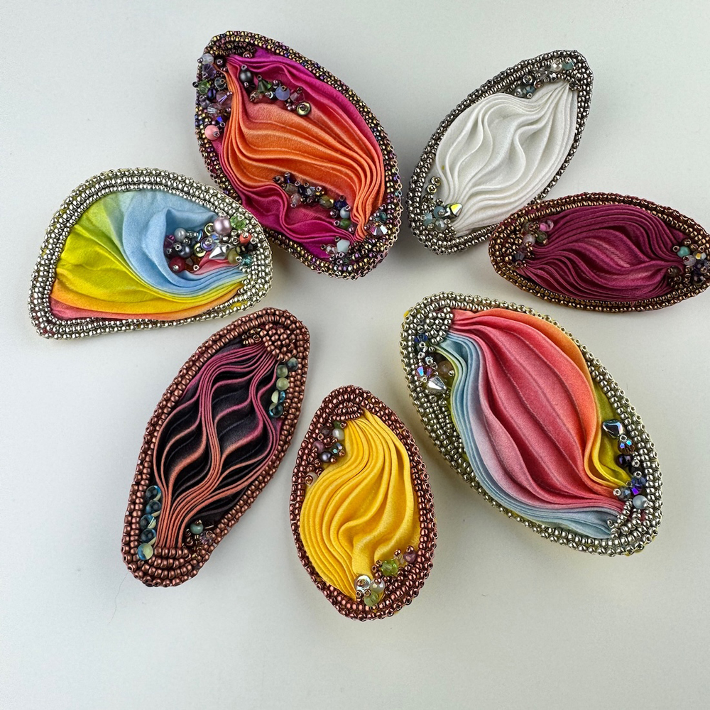 Originally from the west coast of Scotland, now based on the coast near Newcastle. Her work incorporates her love of texture and colour combines Japanese seed beads, Czech glass and hand dyed silk. Each piece is designed and made in her home studio, and is designed to be worn and loved.