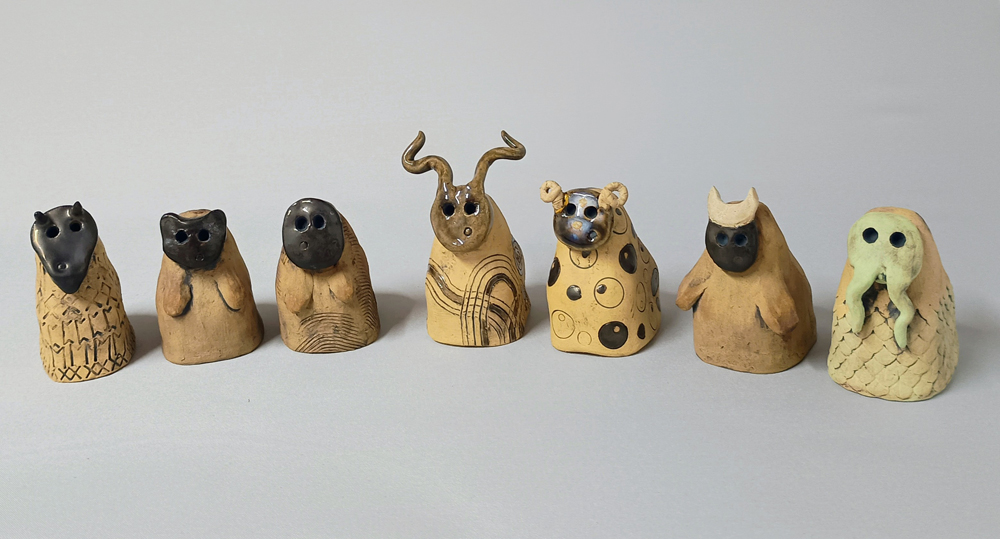The use of many different clay bodies symbolises the diversity of our society. The rabbit and sometimes other prey animals appear as a central agent referencing the fight or flight response which is prevalent in many neurodiverse conditions.