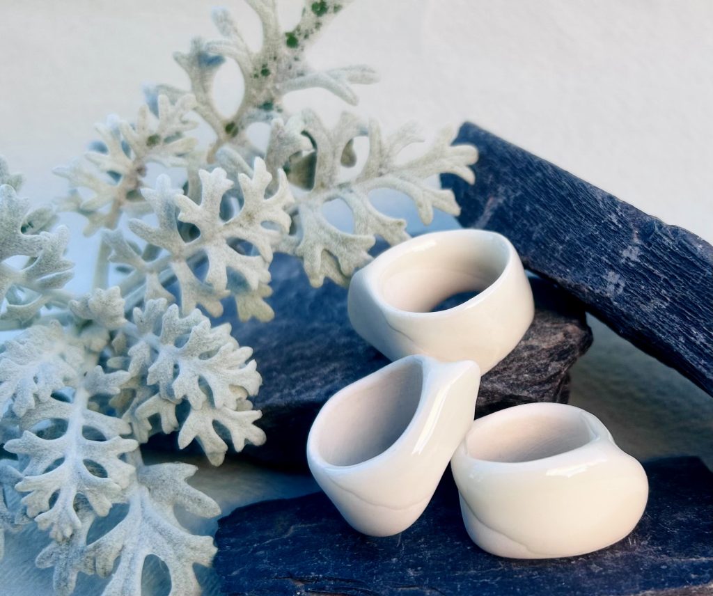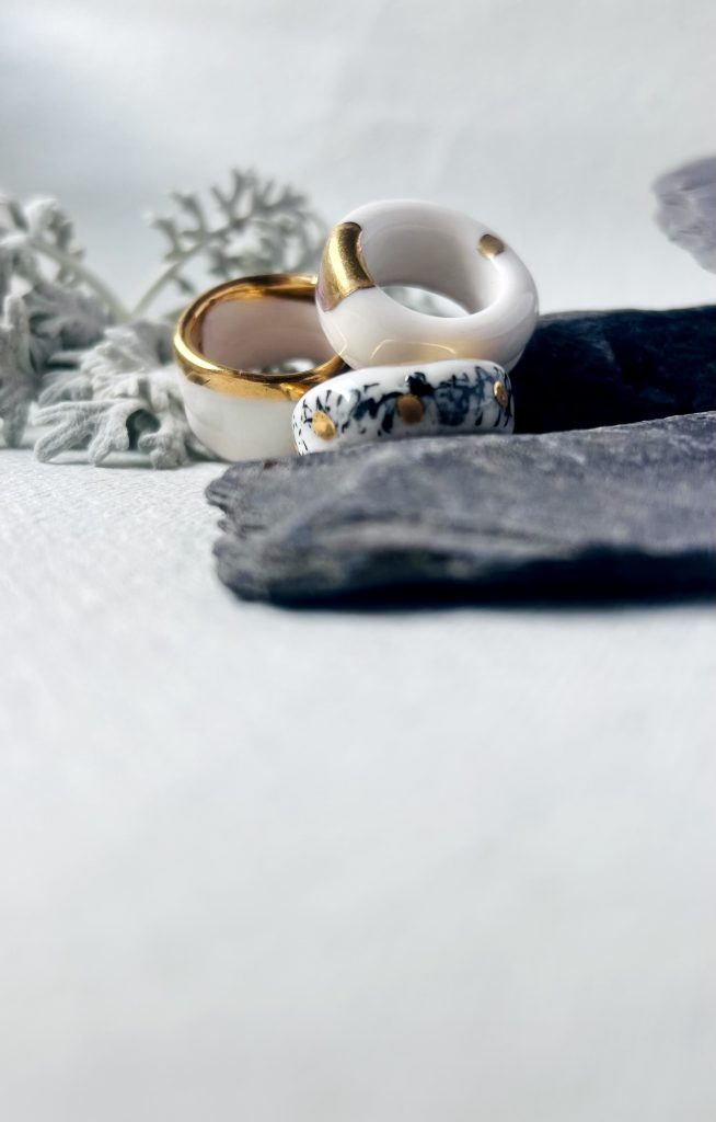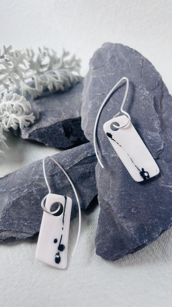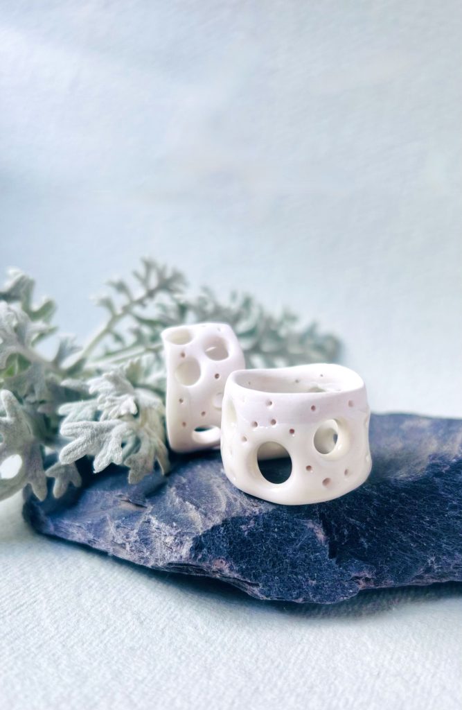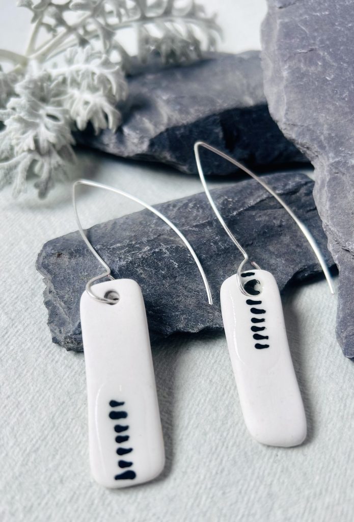 She creates contemporary porcelain jewellery and small objects that combine hand-formed clay with drawing, mark-making and subtle surface detail. Each piece is shaped, glazed and finished in small batches in Harrogate, all embracing the quiet irregularity of the material.